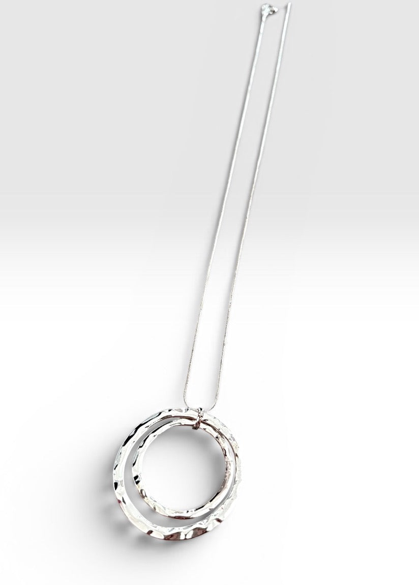 Long snake chain with double hammered circle pendant